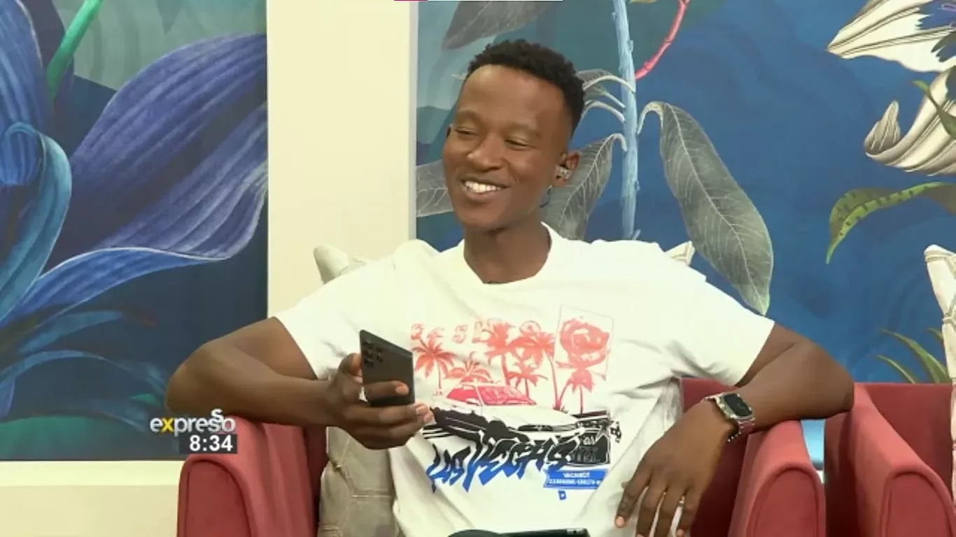 Katlego Maboe handed over his phone, after which Leanne Manas signed him up for the project using this link. After 5 minutes, Manas returned the phone.